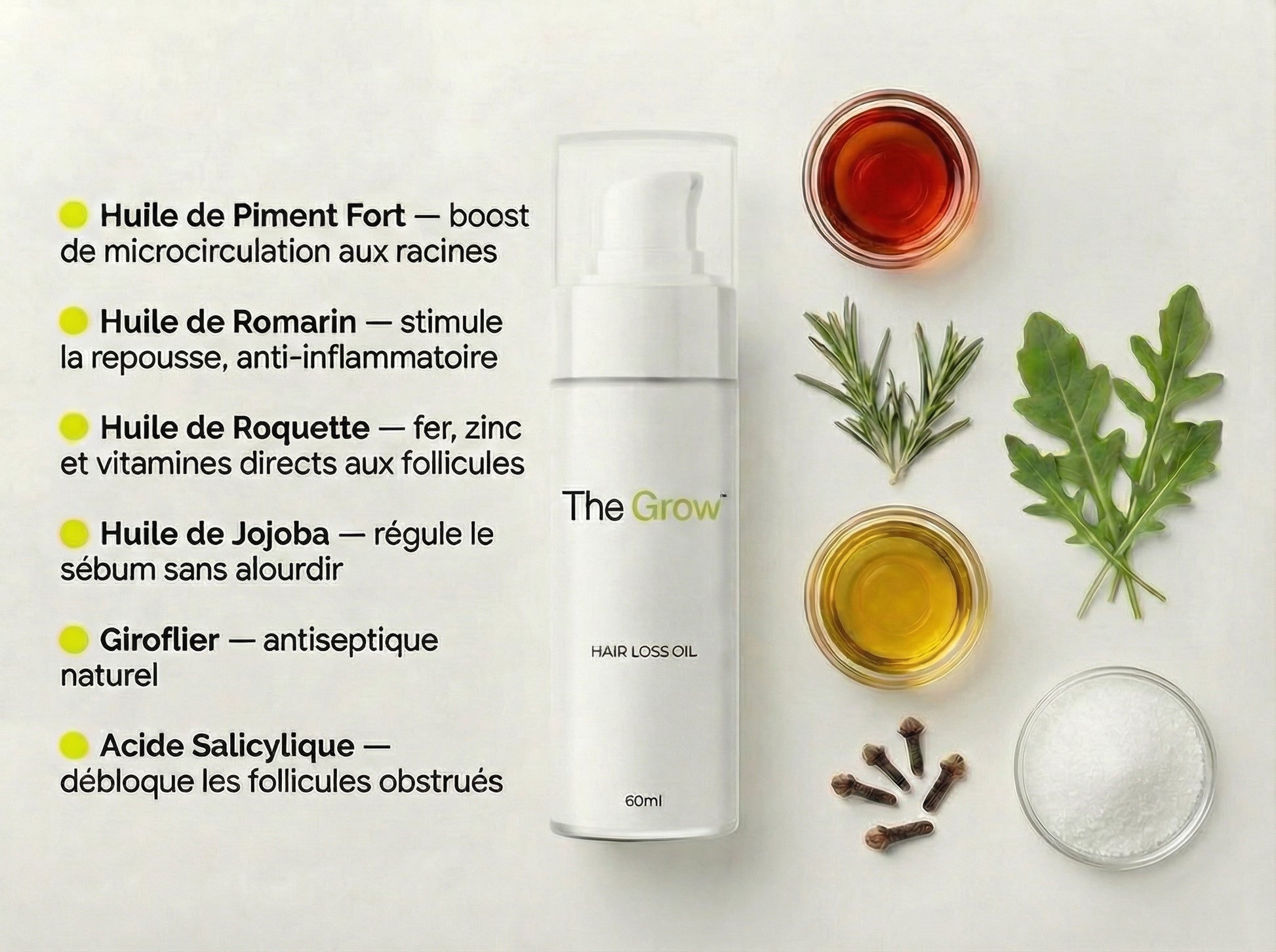 La santé masculine est un écosystème. Tes cheveux, ta performance physique, ton stress, ton énergie, ta confiance — tout est connecté. La plupart des marques isolent un symptôme et te vendent un flacon. Chez The Grow, on conçoit des systèmes complets — chaque produit est formulé pour renforcer les autres. Parce que la combinaison intérieur + extérieur est systématiquement supérieure à la monothérapie. C'est ce que la science dit. C'est ce qu'on applique.